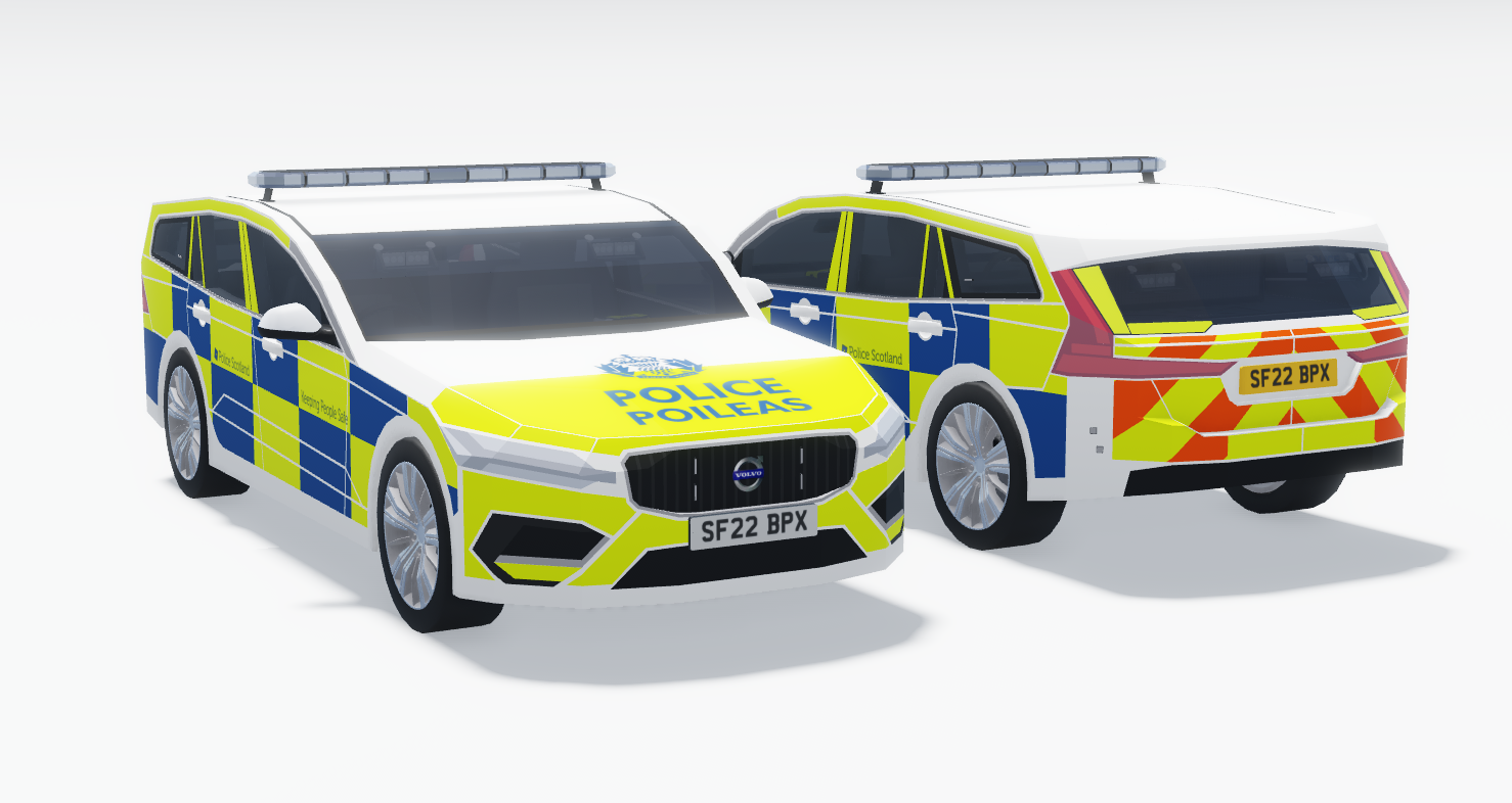 This download contains the 2022 Volvo V60 Cross Country used by the Police Service of Scotland. Although the product shown is related to a specific police service, you are allowed to customise the vehicle how you wish to. Everything on the vehicle can easily be changed or removed to suit your preference. This vehicle is fitted with a functional Emergency Lighting System (ELS) and A-Chassis as standard.